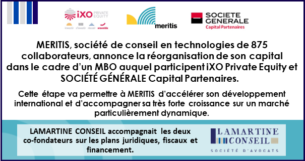 MERITIS accueille à son capital iXO Private Equity et SOCIÉTÉ GÉNÉRALE Capital Partenaires