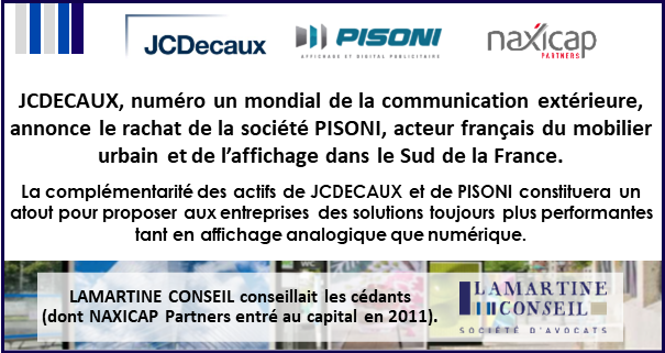 JCDECAUX rachète PISONI, spécialiste du mobilier urbain et de l’affichage