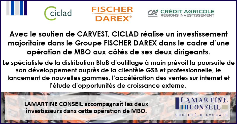 CICLAD, accompagné de CARVEST, devient actionnaire majoritaire du Groupe FISCHER DAREX