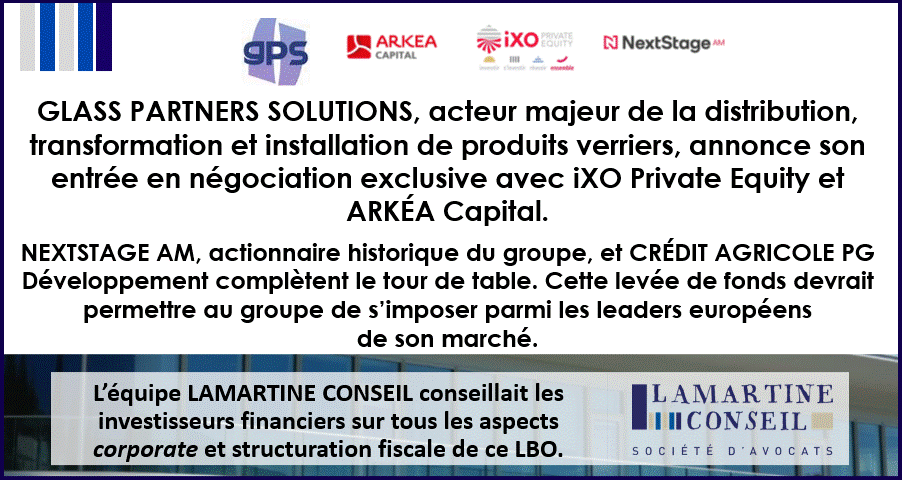 Glass Partners Solutions (GPS) semble avoir pris goût au private equity, après avoir quadruplé son chiffre d'affaires en six ans grâce à l'accompagnement de NextStage AM. Le groupe de distribution et transformation de verre plat s'apprête à renouvelr l'expérience, en s'appuyant cette fois sur iXO Private Equity et Arkéa Capital Managers. Les deux co-lead sont accompagnés par Crédit Agricole PG Développement ainsi que par NextStage AM, qui réinvestit. Cet apport de 50 M€ de fonds propres intervenant à la suite d'un process organisé par Lincoln est également assorti d'une dette senior en deux tranches, atteignant selon nos sources un montant quasi similaire au ticket d'equity, fournie par Arkéa Banque Entreprises et Institutionnels, Banque Populaire Aquitaine Centre Atlantique et Caisse d'Epargne Aquitaine Poitou-Charentes. Le dirigeant fondateur, Elie Benmergui, qui détenait précédemment les deux tiers du capital aux côtés de NextStage, conserve une participation majoritaire. Ce LBO permet également de faire entrer au capital des cadres clés du groupe.