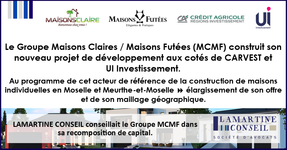 Le Groupe MAISONS CLAIRE / MAISONS FUTÉES (MCMF) recompose son capital avec CARVEST et UI INVESTISSEMENT