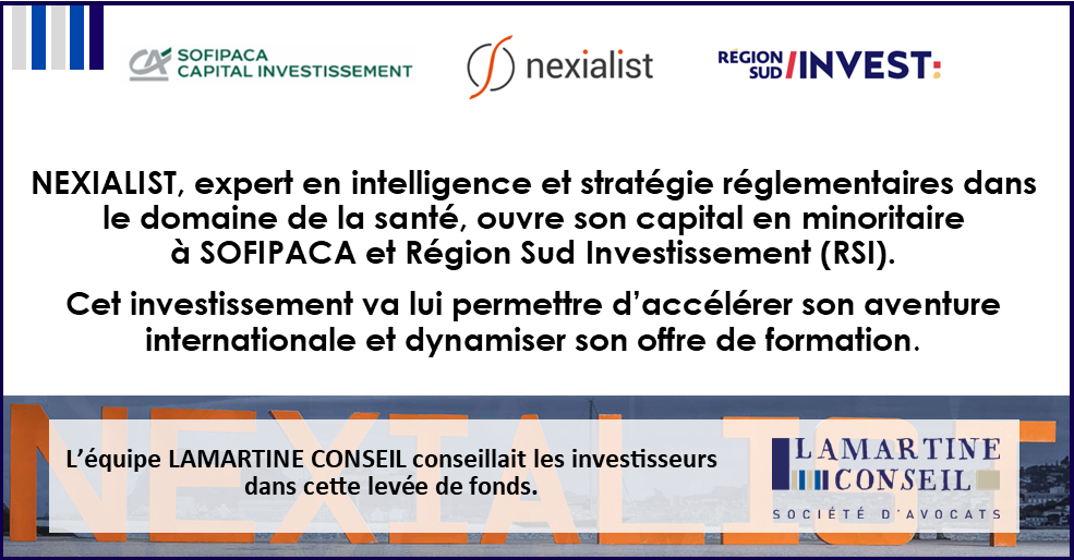 NEXIALIST, expert en intelligence et stratégie règlementaires, ouvre son capital en minoritaire à SOFIPACA et Région Sud Investissement (RSI). Cet investissement va permettre à NEXIALIST d’accélérer son aventure internationale et dynamiser son offre de formation via l’INSTITUT by NEXIALIST.